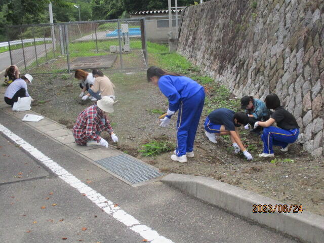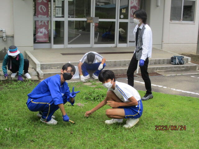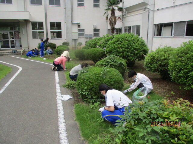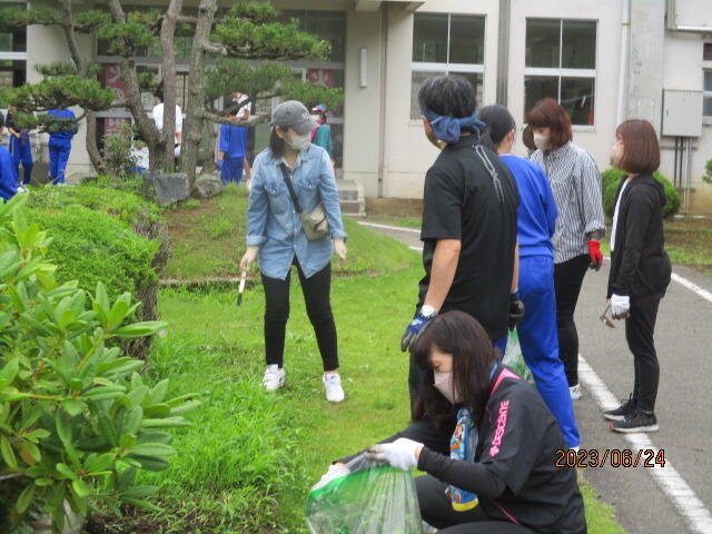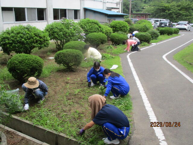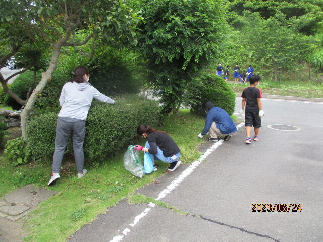 6月24日(土)、PTA親子奉仕作業を行いました。時折小雨がぱらつきましたが、無事に作業を終了することができました。刈り取った草は、ゴミ袋50袋以上にもなり、校舎周辺が大変きれいになりました。活動の様子とビフォア・アフターの写真を掲載致します。保護者の皆様には、お休みのところ、たくさんのご参加をいただきありがとうございました。