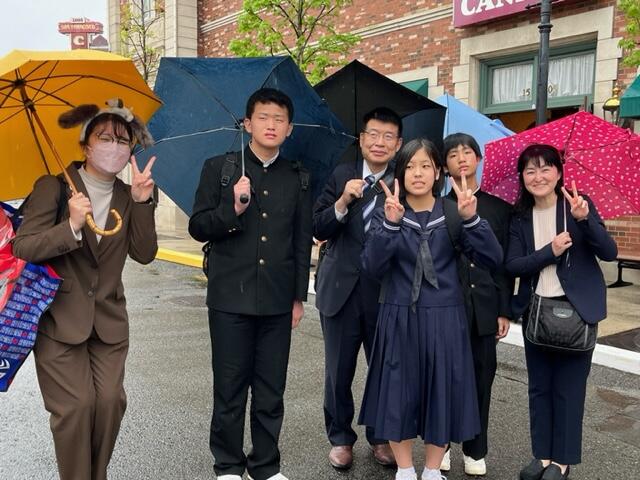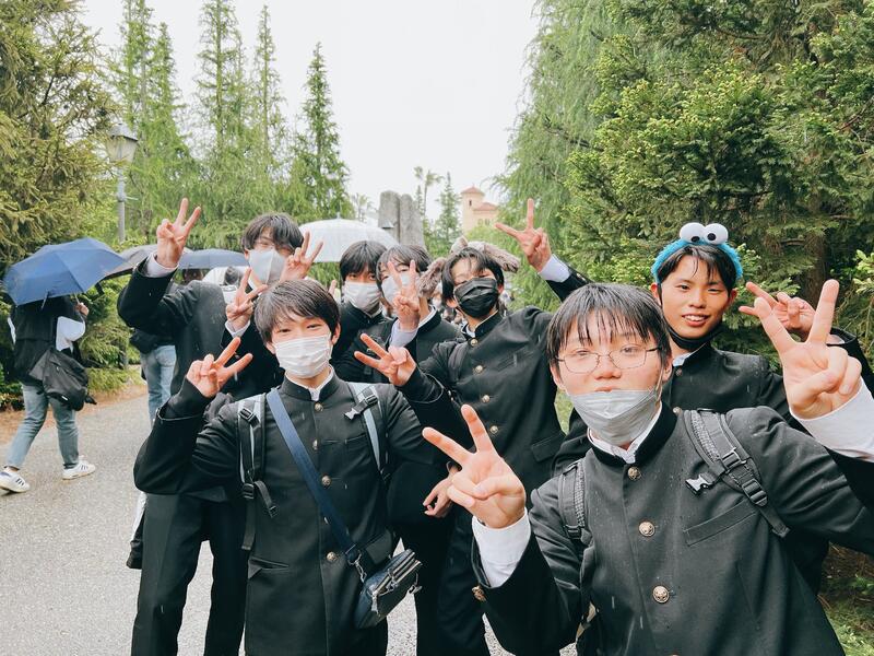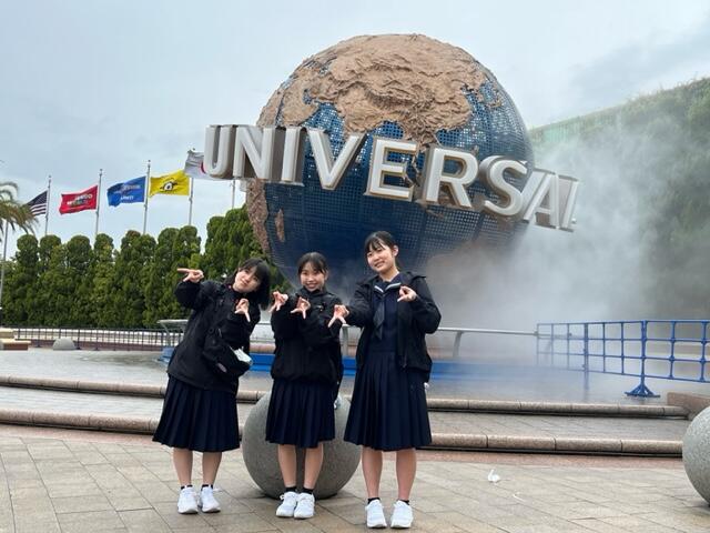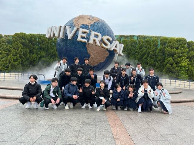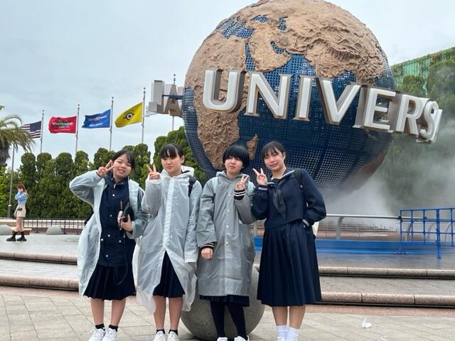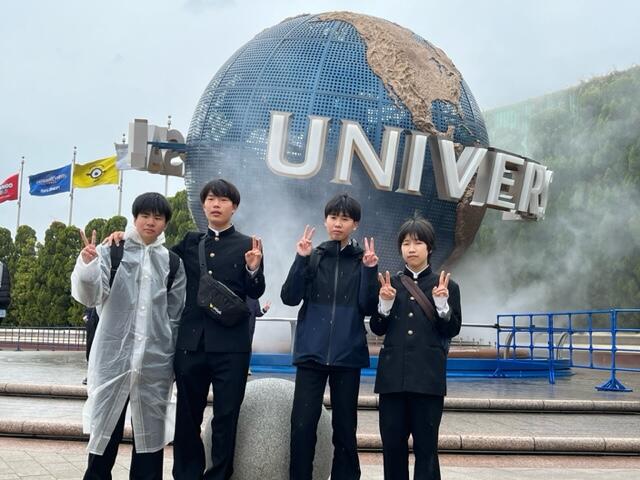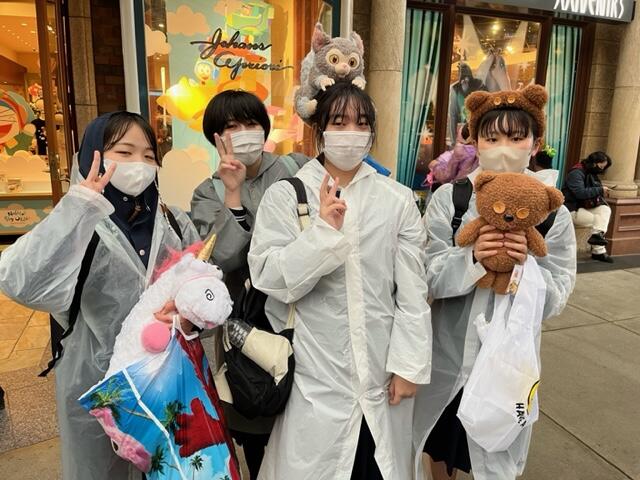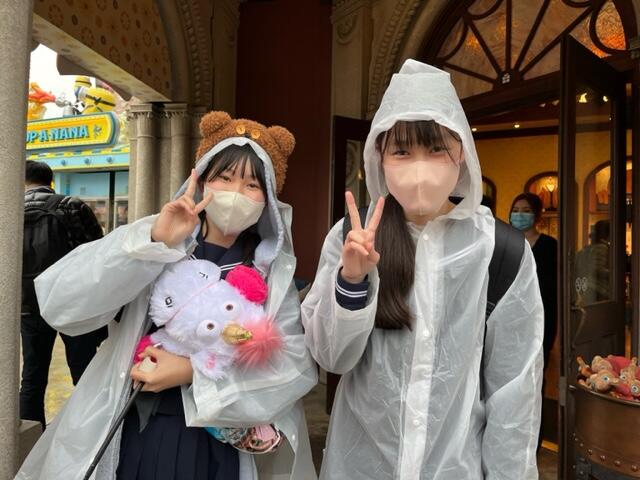 あいにくの雨模様ですが、生徒たちは雨にも負けずUSJを楽しんでいます。
