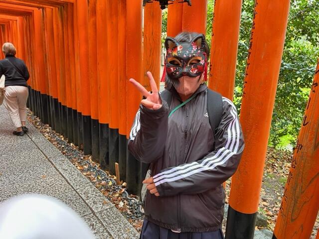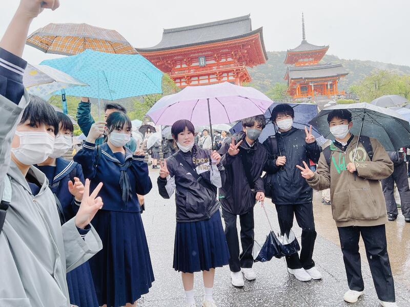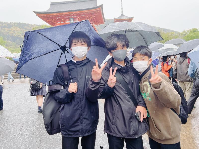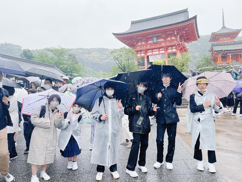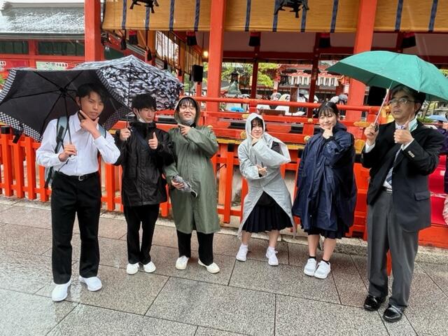 班別活動は、主に伏見稲荷と清水寺で生徒たちの様子をとらえたいと思います。あいにくの雨ですが、生徒は交通機関を上手に活用し、見学を進めています。