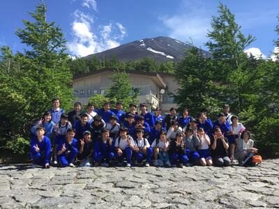 富士山を背景に記念撮影です。