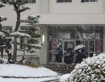 3月22日(火)、天気予報通り、天候は雪。雪の中の登校、そして授業になりました。