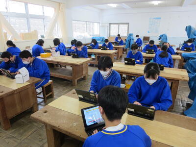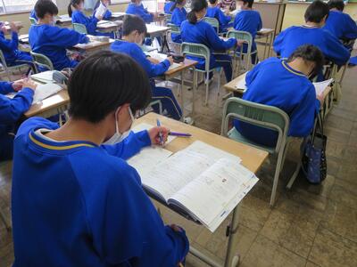 3学期最後の授業。生徒たちは、まとめの学習をしっかりおこなっています。