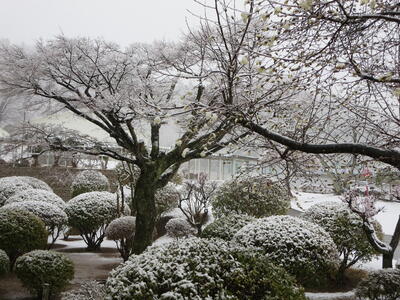 校地内には梅、そして「こぶし」の花が咲いて、春の訪れを告げています。