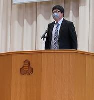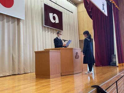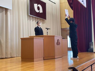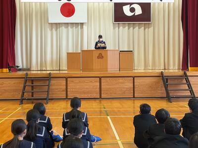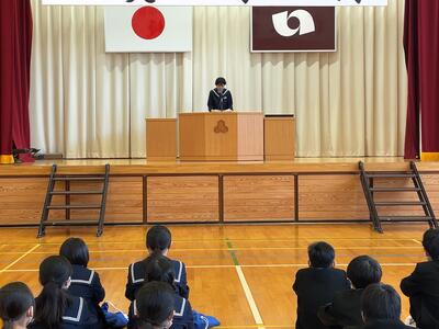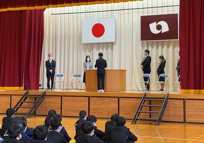 式の後、各学年代表生徒が、1年間のまとめと新年度へ向けて抱負を述べました。