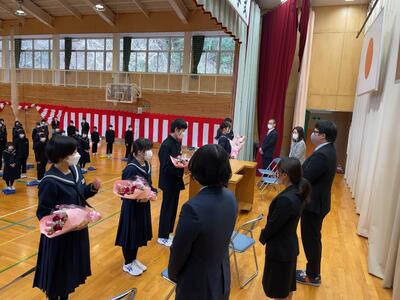 保護者の皆様、地域の皆様には、これまでのご指導、ご厚誼に重ねて感謝申し上げます。転退職する職員のさらなる活躍を願っています。