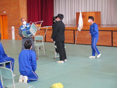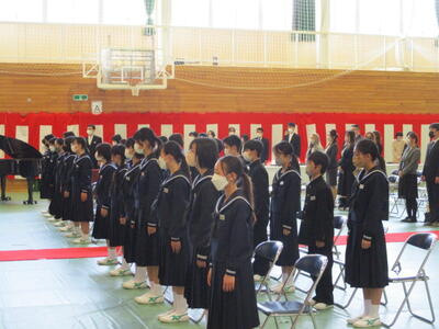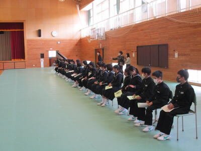 校長式辞では、キャリア教育アンケートの「親を尊敬し、感謝すること」の項目が1・2年生で大きく伸びていることを紹介しました。これは、親御さんが一生懸命働き、生活していることをより広い視野から客観的に見ることができるようになってきた、それだけ、精神的に大人になってきた証拠であると話しました。うれしいことです。