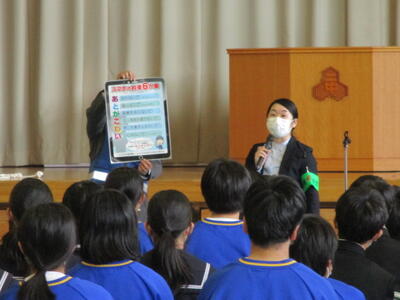 昨日は、午後から防犯教室と対面式がありました。いわき中央警察署より少年補導員とスクールサポーターの方に、常磐分庁舎からは生活安全係の方に講師としてご来校いただきました。