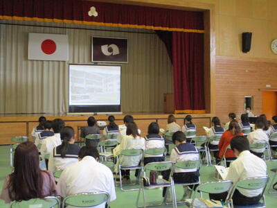 7月7日(水)は、3年生と保護者を対象に、第1回高校説明会を開きました。その後、修学旅行についても説明を行いました。保護者の皆様には、ご多用のところご参加をいただき、ありがとうございました。