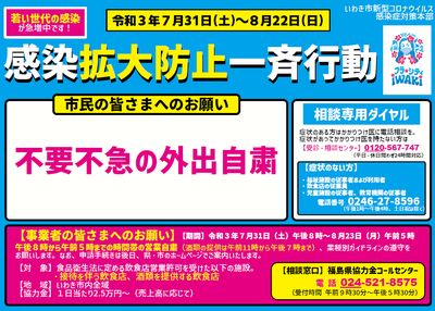 併せて、いわき市では「いわき市感染拡大防止一斉行動」が発令されました。