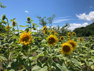 【JRCの生徒が育てた校門のひまわりが咲き誇っています】