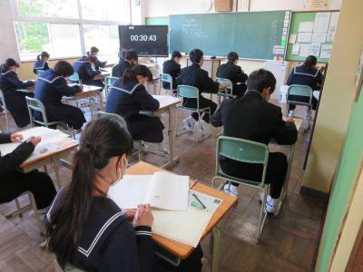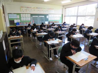 4月21日(水)、「ふくしま学力調査」があり、1年生と2年生が国語と数学(1年生は算数)の復習問題に取り組みました。その後、日頃の学習状況を振り返るアンケートに回答しました。