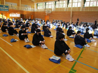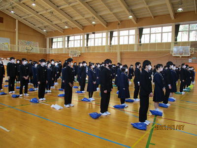 1月7日(木)、始業式を行い、例年より1日早く3学期が始まりました。冬休みの間、生徒に大きな事故等がなく、全員が新しい年、新しい学期を迎えることができました。この間の保護者の皆様のご協力に感謝いたします。3学期もよろしくお願いします。