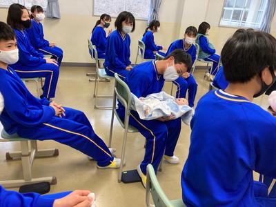 1月15日(金)には、1年生を対象に思春期講座。いわき市民講座を活用し、いわき市医療センターから助産師さんを講師に招いて「生命誕生のすばらしさ」について講義、演習を行いました。