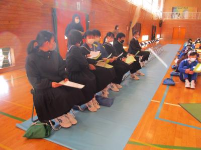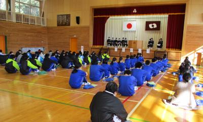 その後、生徒会役員から冬休みの過ごし方について発表がありました。また、生徒指導主事から生活全般について、保健主事から冬休みと3学期の新型コロナウィルス感染症対策について具体的に指導しました。
