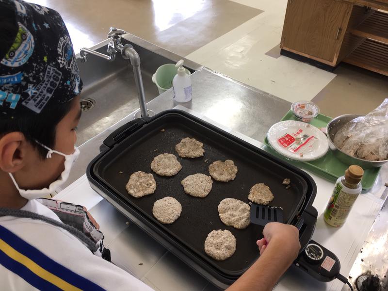 手袋をしながらとはいえ「手ごね」を嫌がっていた生徒もだんだん夢中になって調理していました。