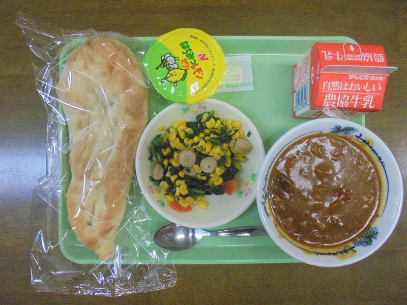 1月9日(木)、3学期最初の給食は湯本三中のリクエストメニューです。ナン、牛乳、チキントマトカレー、野菜ソテー、はちみつレモンゼリーです。3年生は私立受験真最中ですが、しっかり食べて体調を整えて受験を乗り切ってください。特に朝食をしっかりとることが大事です。