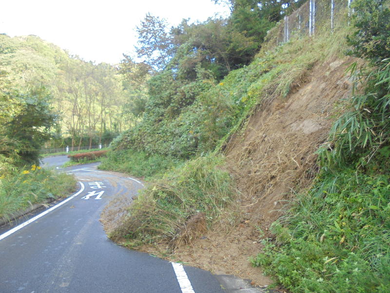 ①草木台方面から本校へ上がるプールわきの坂道の崖崩れ➡通行できませんので、浅貝団地側の坂道へ回って上がってください。