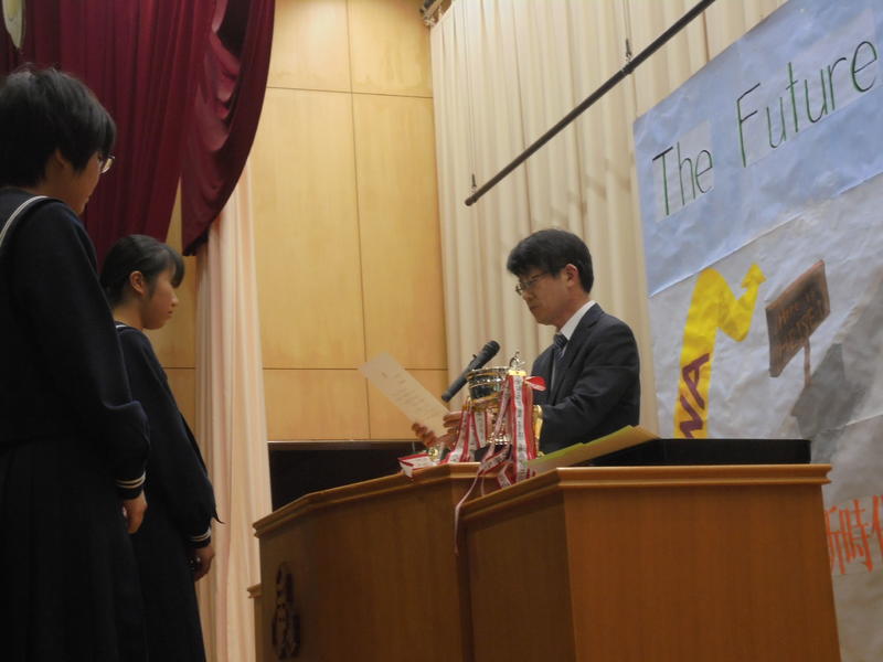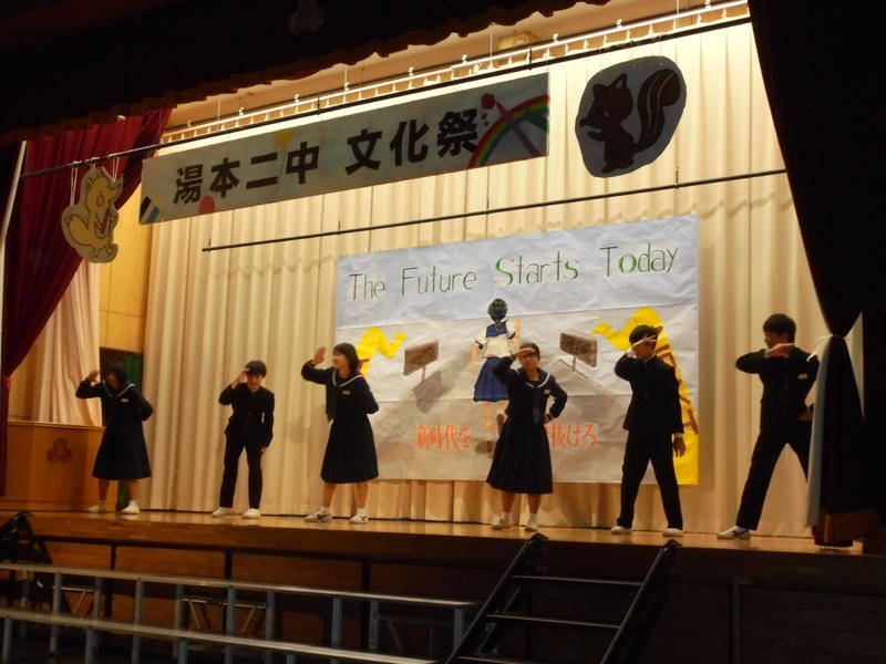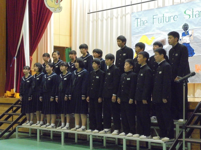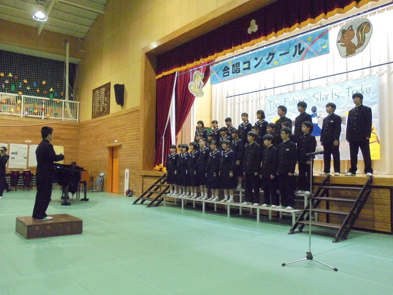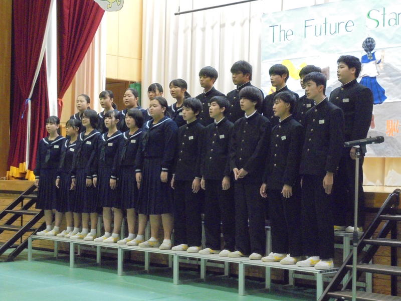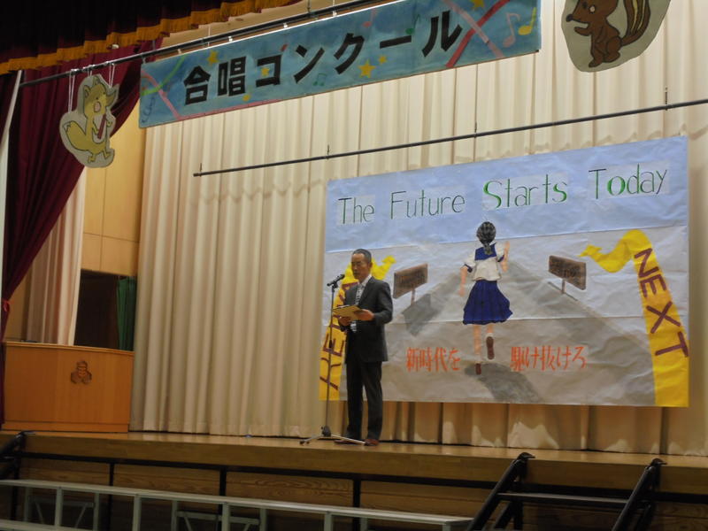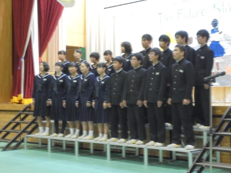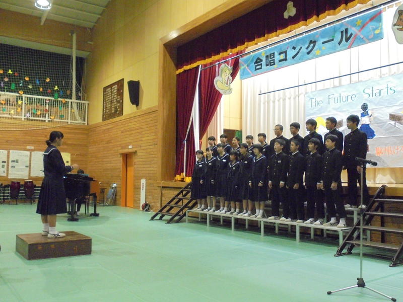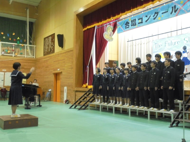 10月27日(日)、予定通り文化祭・合唱コンクールを開催しました。金曜日の大雨で土砂崩れがおこるなど心配しましたが、無事開催することができました。午前中に学年ごとの総合発表があり、しごと塾などで体験したことをプレゼンテーションで発表しました。午後からは合唱コンクールを行い、今までの練習の成果を披露しました。生徒一人一人が活躍し、思い出に残る一日となりました。PTAの皆さんには昼食販売等をしていただきました。ご協力ありがとうございました。