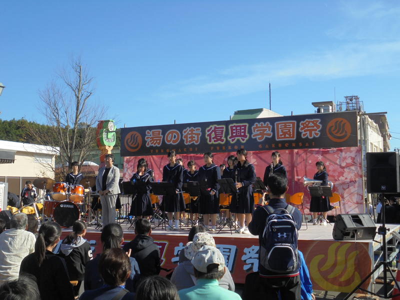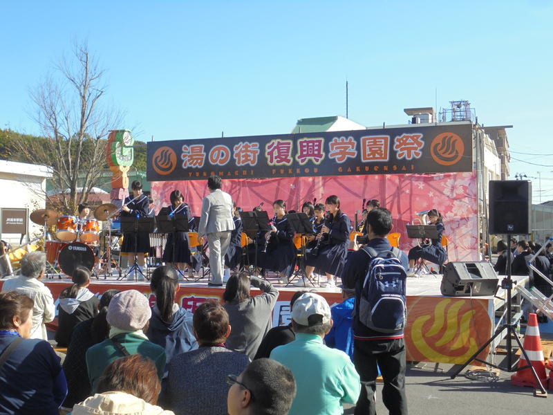 11月2日(土)、湯本駅前を中心に湯の街復興学園祭が開催され、本校吹奏楽部が出演しました。気持ちのいい青空の下、日頃の練習の成果を発揮し、多くの地域の皆さんに喜んでもらいました。お疲れ様でした。保護者の皆様のご協力、ありがとうございました。