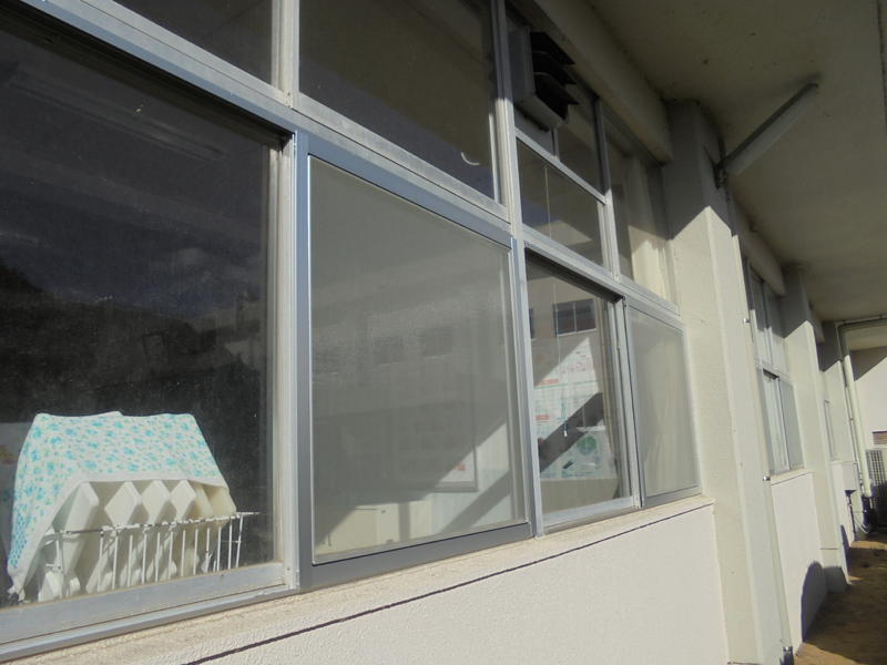 技術室や家庭科室などの特別教室に網戸を設置しました。本校は周りが山ですので、窓を開けておくとハチなどが入ってきます。それで、ここ数年、少しずつ網戸を設置してきました。文化祭でのPTA昼食販売の益金も活用させていただきました。ありがとうございました。