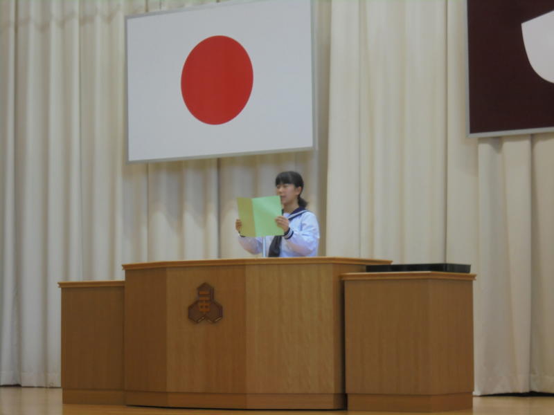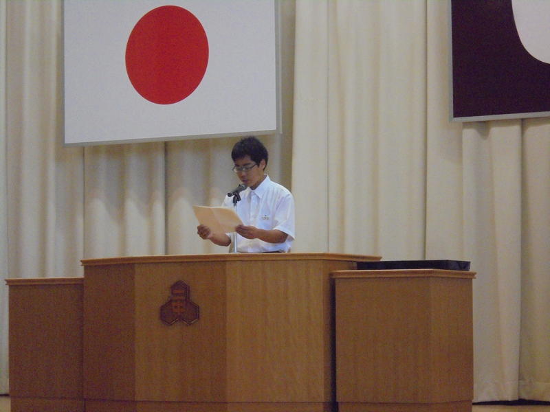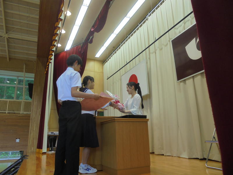 7月19日(金)、第1学期終業式を行いました。賞状伝達、校長式辞の後、各学年代表生徒による1学期の反省発表がありました。また、1学期の間お世話になった保健室の先生と、お別れの式を行いました。事故やケガの無い、充実した夏休みにしてほしいと思います。