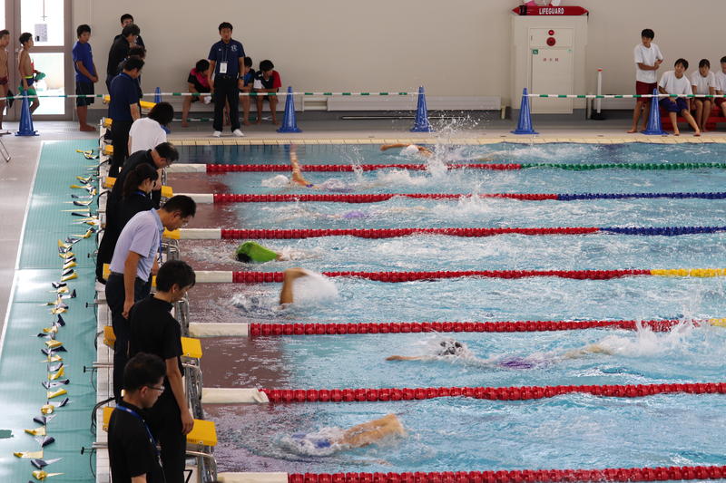 7月24日(水)、郡山しんきん開成山プールで、県中体連水泳大会が行われ、本校の3年男子が200m個人メドレーに、2年女子が100m自由形と200m個人メドレーに出場しました。2年女子が100m自由形で予選を通過し、決勝に進出しましたが、東北大会はなりませんでした。2人とも持てる力を出し切り、すばらしい泳ぎを見せてくれました。お疲れ様でした。