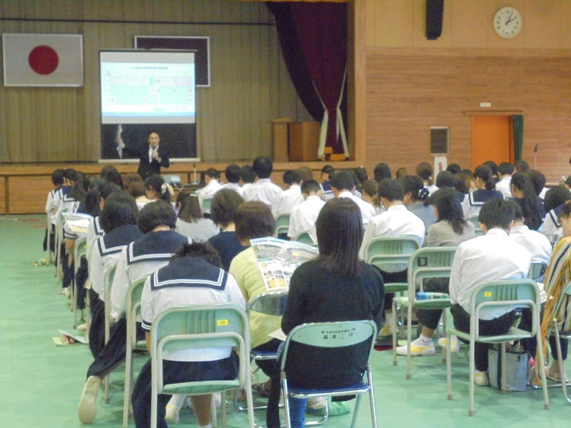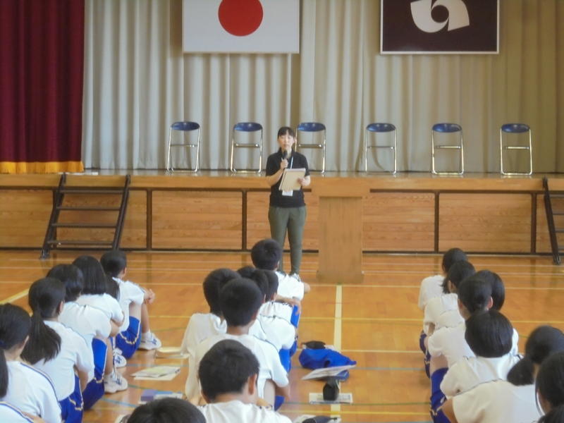 6月26日(水)、いわき中央警察署常磐分庁舎から警察官の方に来ていただき、交通教室を行いました。DVDで自転車の危険運転について見た後、実際の事故のお話から命の大切さについて考えました。また、なぜ警察官になったのかのお話も聞き、有意義な時間となりました。
