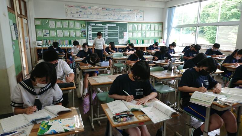 昼休み、静かな緊張感が漂っていたので、教室を訪問してみると、今週木曜日、金曜日の期末テストに向けて、どの学級でも学習に励んでいました。
