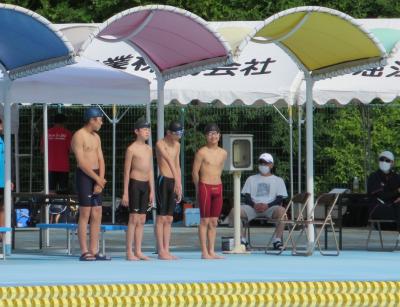 本日の最終レースは男子400mフリーリレー。入賞はなりませんでしたが、4人の生徒が最後まで泳ぎをつなぐことができました。
