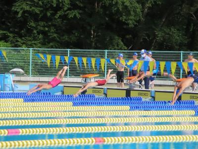 水泳は本日11日(金)から始まりました。感染を防ぐため、各選手が自分のレースに合わせて会場入りし、ウォーミングアップ。自己管理能力が試されます。女子、男子の順で行われ、どの選手も一生懸命泳ぎ切りました。
