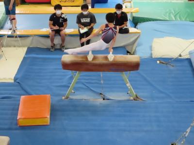 【第1種目「あん馬」 筋力も必要で、難しいのですが、つま先まできれいです 頑張りました】