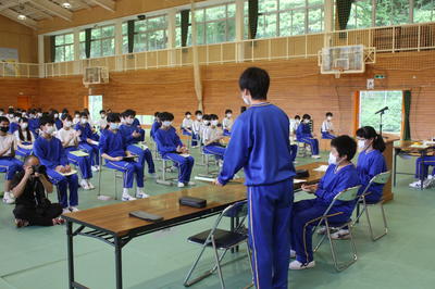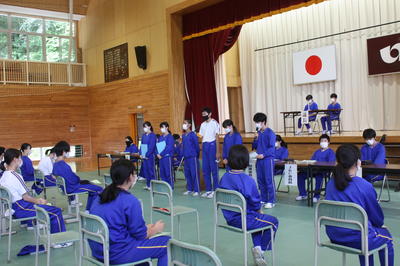 また、対面式をなかなか開けなかったため、生徒会本部役員から生徒会活動や中学校生活について説明があり、各部活動の部長から活動の状況や決意が発表されました。
