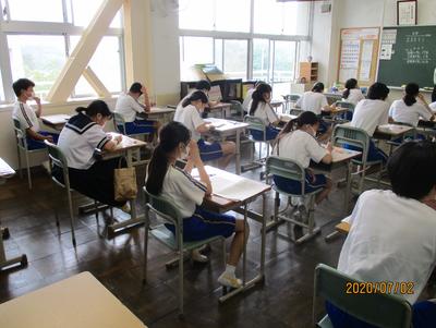 7月2日(木)、期末テストがありました。今年度は、臨時休業があったため、中間テストはなく、期末テストを実施しました。