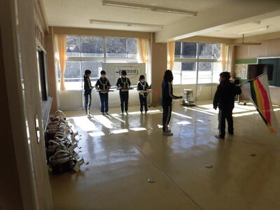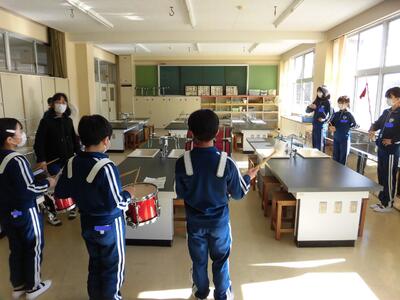 2023年2月12日 10時24分大休憩には、鼓笛の引き継ぎに向けて、5年生が鼓笛の自主練習に取り組んでいます。パートによっては、自主練習に協力し教えてあげる6年生の姿も見られました。