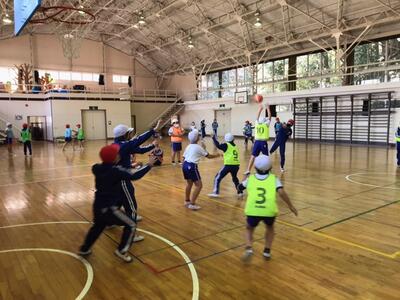 どの子も積極的に参加し、とても盛り上がりました。半数ほどの子がシュートを決めることができました。