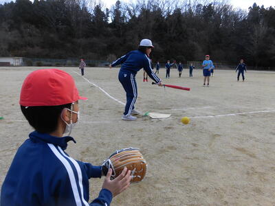 校庭では、プレゼントのグローブを順番につけながら、野球をして大盛り上がり!!