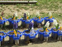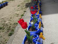 2021年3月31日 14時27分体育館前の木蓮の花は例年よりはやく散ってしまい、今日の風で桜の花びらが校庭を舞っています。チューリップやヒヤシンスも花開き、タンポポも4月6日の始業式の日を待てずに咲き始めています。