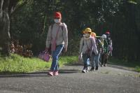 2021年4月8日 08時08分 4月8日(木)、今日も1日いい天気になりそうです。水野谷地区、草木台・浅貝地区の子どもたちが新しい登校班で元気に登校してきました。学校前の上り坂がきついようです。