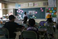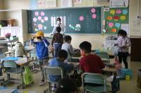 1年生は先生のお話を聞きながら朝の準備を頑張っていました。