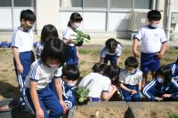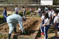 3年生が、キャベツの苗を用務員さんに協力いただきながら植えようとしていました。モンシロチョウが卵を産むことを期待して。楽しみだね!
