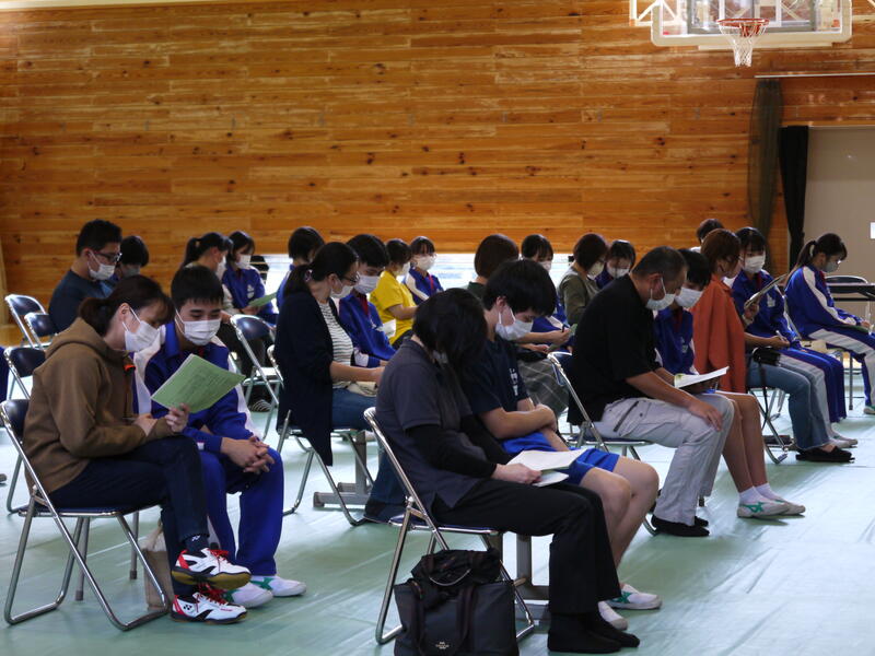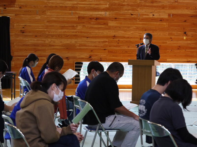 2023年10月19日 14時34分県立高校の入試説明会を受けて、3年生の生徒と保護者のみなさんに、高校入試の説明会を行いました。
