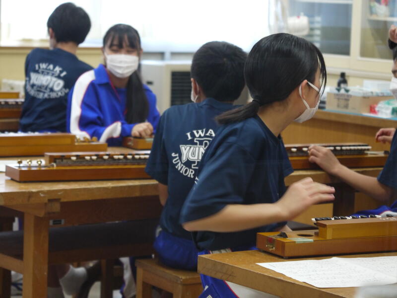 金曜日に行われる漢字コンテストに向けて帰りの学活終了後、真剣に漢字を覚える生徒たちの姿が見られます。