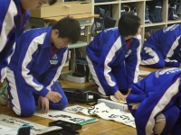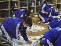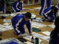 2016年12月13日 13時00分1,2校時に2年生が、3,4校時に1年生が、教室で書きぞめ練習を行いました。
