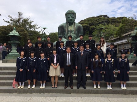 修学旅行初日 鎌倉の大仏様の前で思い出の一枚