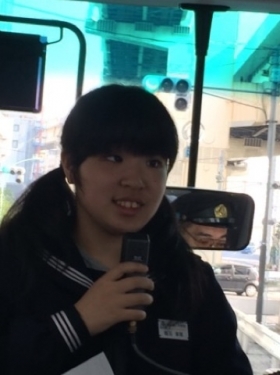 バスの中では、体験学習アトリエに向かうまでのバスガイドをつとめます。