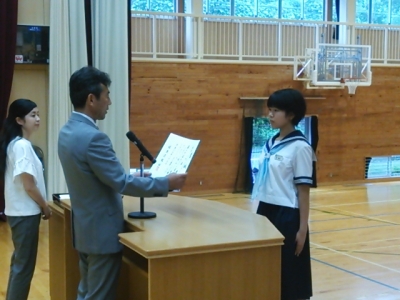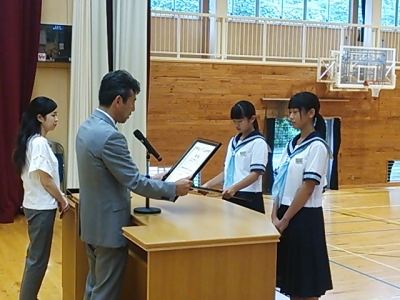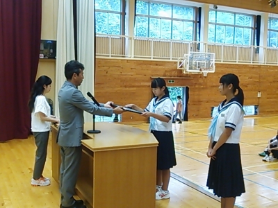 夏休み中に行われた、書道展・卓球の大会・ビーチバレー大会の表彰です。