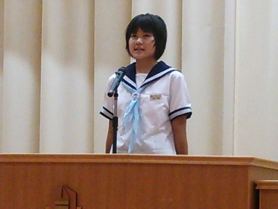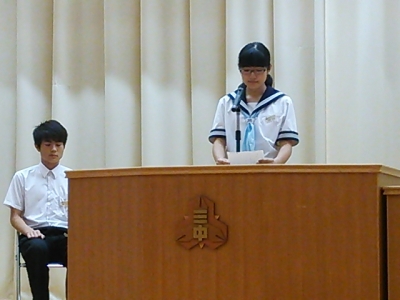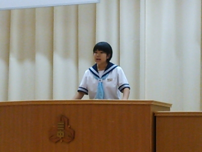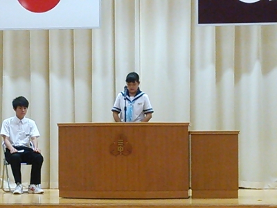 続いて、来週行われる英語弁論大会に向けての校内発表が行われました。