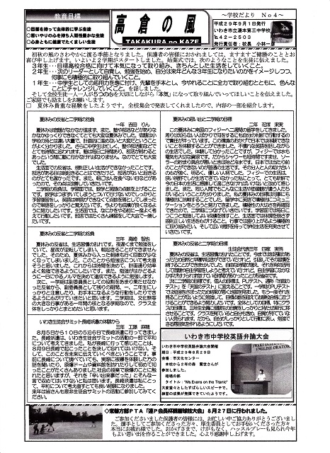 湯本三中では、生徒の自己肯定感や自己有用感を高めることを目的に、毎年『スマイル運動』を実施しています。